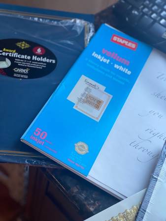 extra items: 2 legal pads & 2 Mead Business stationary ,acid free 39700 for laser or inkjet quantity 2 ( most items are new )