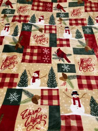 Super soft plush fleece lightweight construction oversized throw blanket with Christmas design. Measurement 60” x 72” polyester, machine wash.