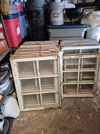 I have 26 old window frames 36" x 28" most of them a few are a few inches smaller see pictures all glass is good no broken panes $5.00 each or all for $100 great for art project or pictures to hang...