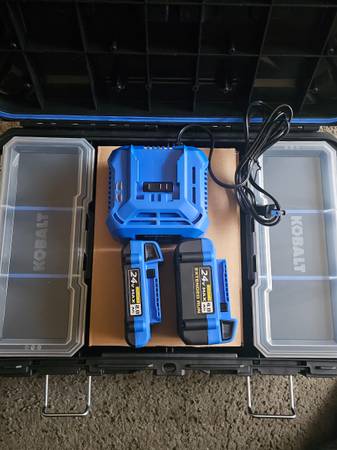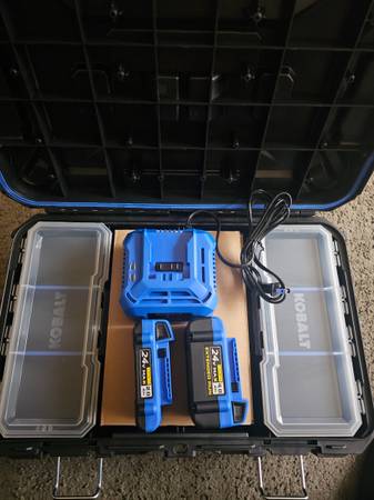 New comes with charger, 2 batteries 4.0 ah 24v and 2.0 ah 24v