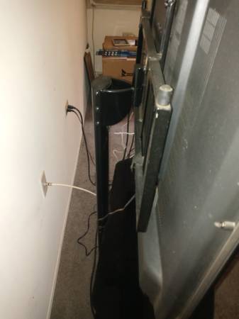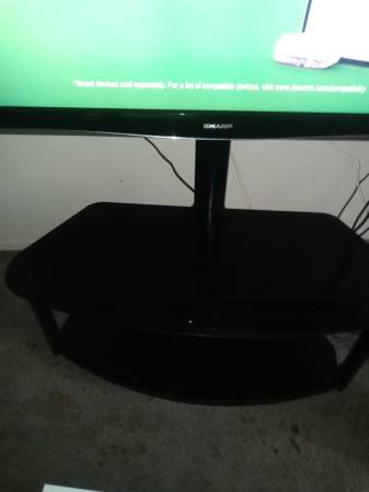 TV stand for sale holds up to a 52" 2 black glass shelves Brown wood grain stand.. swivels around.. can turn tv to what ever position you want