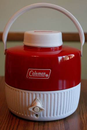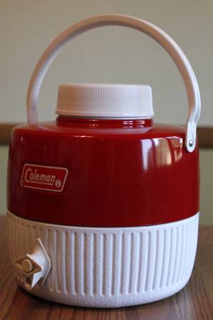 Red metal Coleman water jug cooler in almost perfect condition. A true collectable. 1 gallon capacity. With insert cup. Local Pick ONLY! Buy Now! Contact for more information. Is it still available...