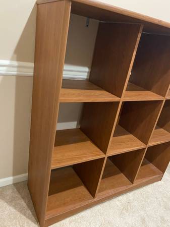Cube storage unit/bookcase. 46" W x 48 " H x 15" D Bookcase only Lots of room. Couple of scratches but still in good condition Pickup by Forest Pl & Bernard Dr in Buffalo Grove