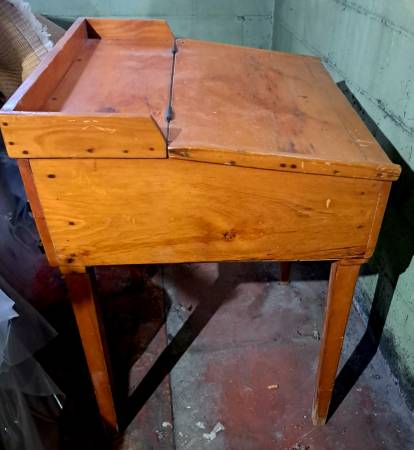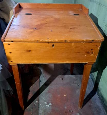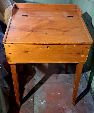 Rare and unique, antique 19th Century School Master desk. Solid pine with iron hinges. Some scratches and knick s, but adds to the patina of over 150 years. $75 obo.