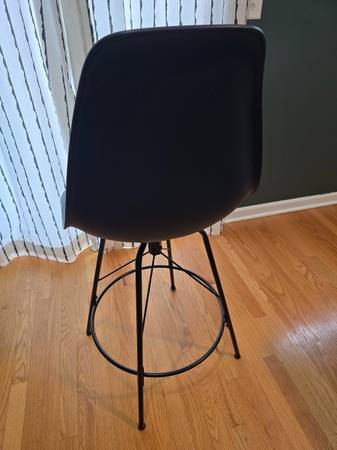 Black barstool chairs measuring 42" tall (25" from the lip of the seat) and 16" wide. 4 chairs available. $30 for one chair, $50 for two chairs.