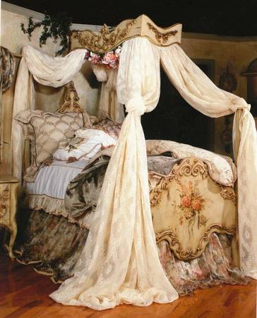 Guinevere Collection - Queen size canopy bed & chest of drawers (originally $9,000)
