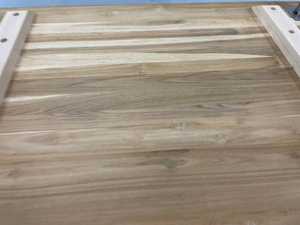 The table measures 52 inches wide, 32 inches deep and sits 31 inches tall off of the ground. The best part of of the table design is that it can also be used as a small dining table when company comes over. The tabletop is in absolute perfect condition and is indestructible. The top does detach from the top for easier transport.