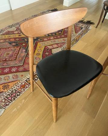 Beautiful vintage mid-century modern set including 1 dining table and 6 chairs (2 with armrests and 2 without). The gorgeous dining table features a super cool butterfly leaf that conveniently stows away under the table when not in use.