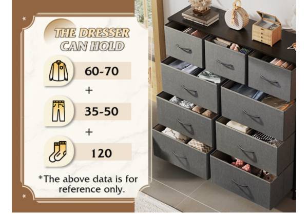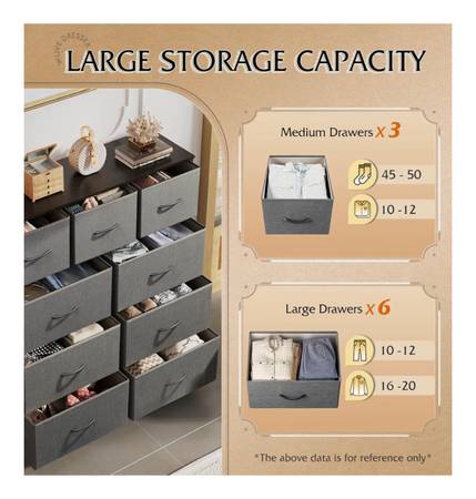 • 9 spacious fabric drawers