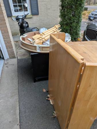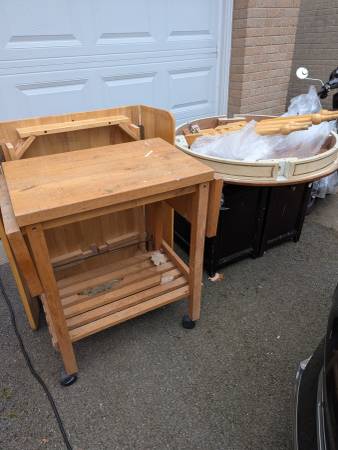 Two small kitchen tables, two end tables, one foldable side table. All in good shape and recently used.
