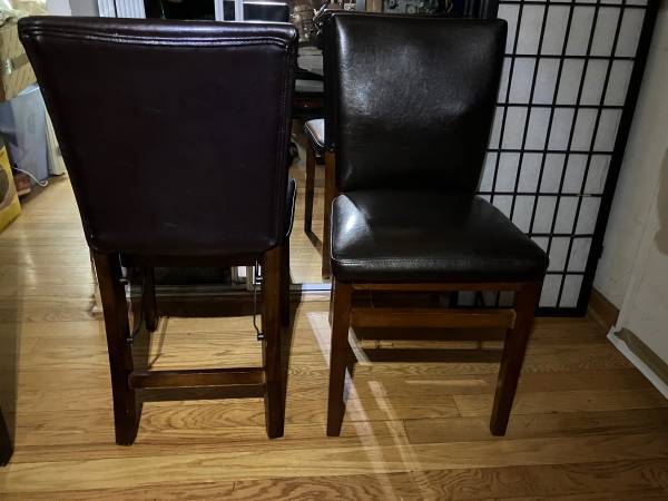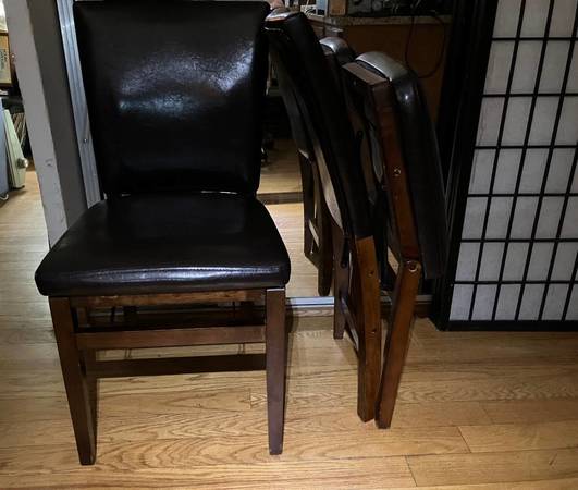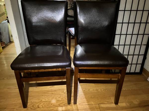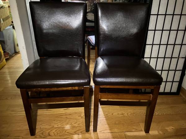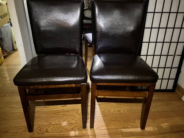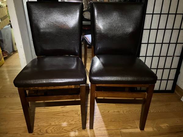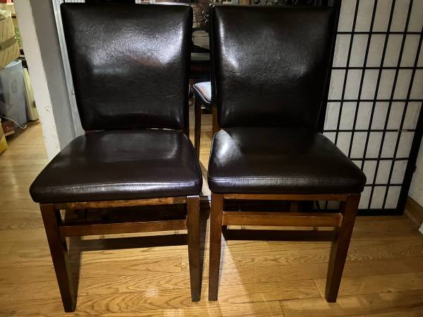 Costco Premium solid wood classic with heavy duty vinyl full-length comfortable cushion chairs.