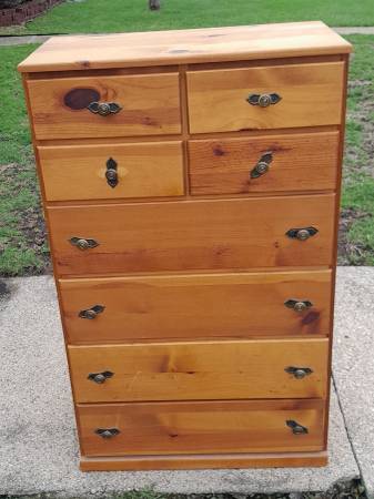 Eight drawer chest is in very good, solid condition is 45" high, 14" deep and 27" wide.