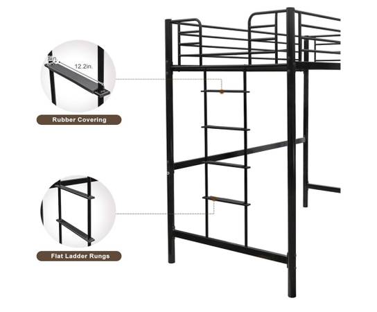 【SECURED LADDER】 Instead of narrow circular steps, our Bonnlo Loft Bed comes with an upgraded ladder with wide flat ladder rungs and rubber covering, making it comfortable and safe to climb. Ladders could be attached to either side to fit your requirement