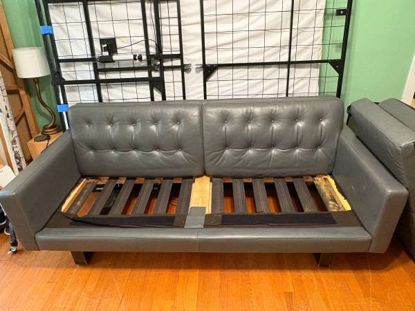 Used Room and Board Andre 76" Sofa in Vento Grey. Being sold as-as. Comes from a home with cats. The leather has some claw marks, and the lining under the cushions has been torn out. Pickup only in...
