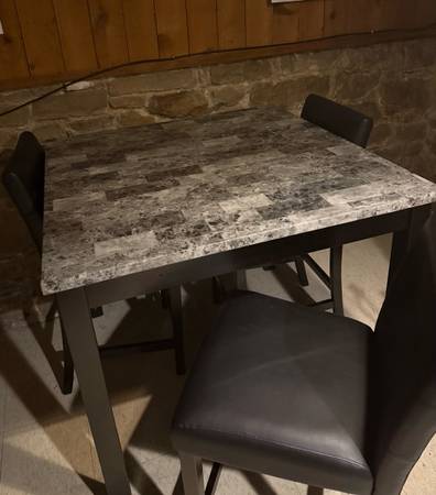 Selling a modern counter-height 5-piece dining set: 1 square table + 4 matching padded chairs.