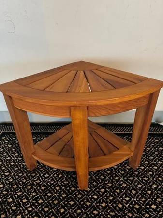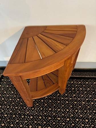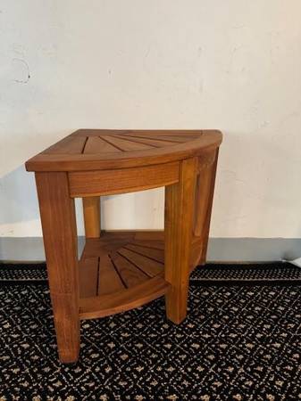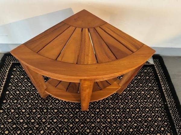 Teak Corner Stool by Aqua Teak – a versatile and space-saving solution designed to add both elegance and functionality to your home. Crafted with precision from sustainably sourced teak wood. Like new ,from a smoke-free home.