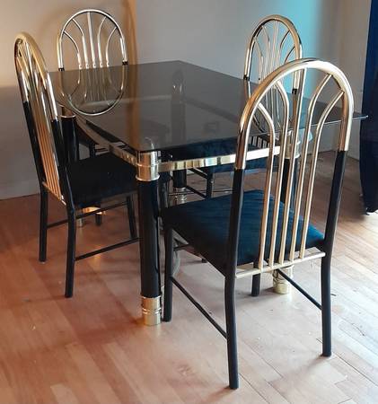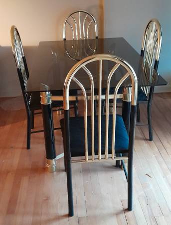 Tommaso Barbi style dining room table with four chairs are in excellent condition.