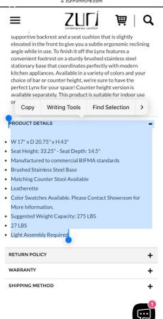 USED LIKED NEW Set of 4 gently used barstools from Zuri Color is “cream” Smoke free home Open to offers SEE PHOTOS FOR DIMENSIONS