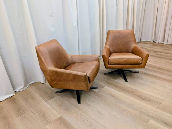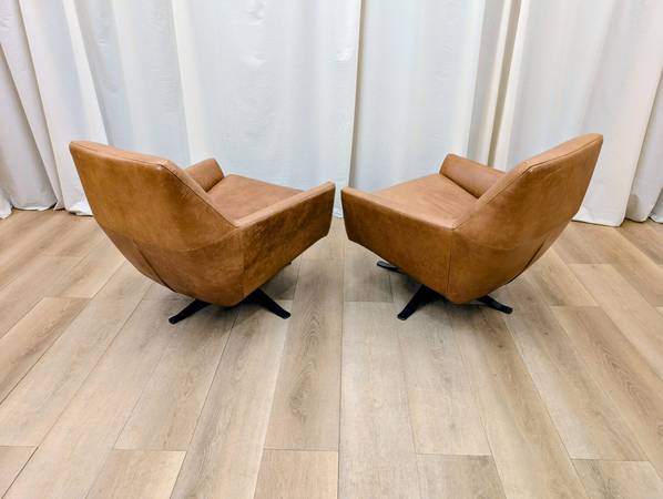 West Elm Lucas MCM Leather Swivel Chairs Pair Free Delivery -...