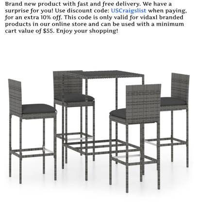 This 5-Piece Modern Garden Bar Set is the ultimate outdoor furniture for any balcony or patio. It's got style and function all wrapped up in a striking design. The set includes a table and four stools, all made from durable, weather-resistant materials. So, you can entertain friends and family comfortably, whether it's a sunny day or under the stars.