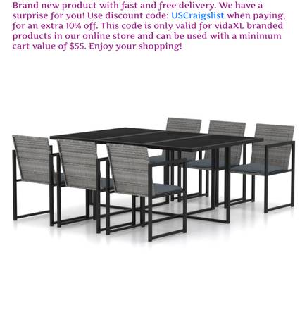 Delivery Contains: 1 x Table, 6 x Chair, 6 x Seat cushion