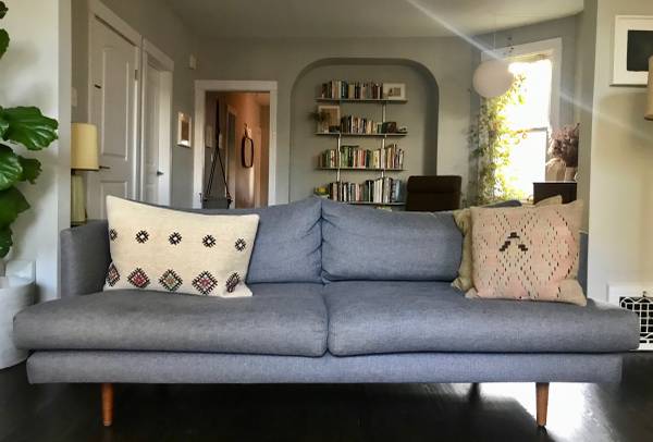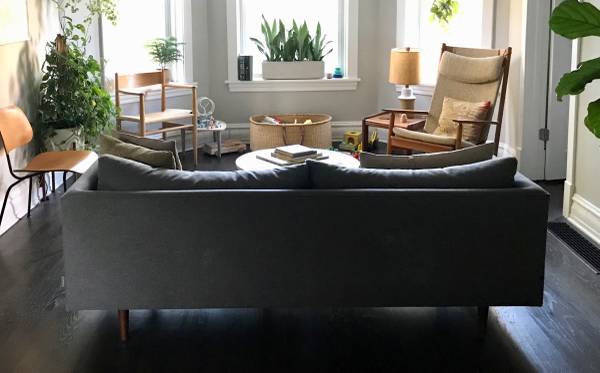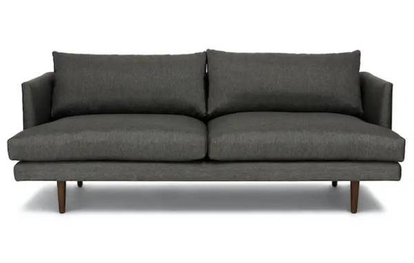 REDUCED Mid-century style 78" graphite gray performance-fabric sofa with walnut legs. Purchased for $1,150 from Article. Excellent, like new condition. Asking $550. Can deliver curbside to...