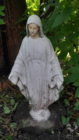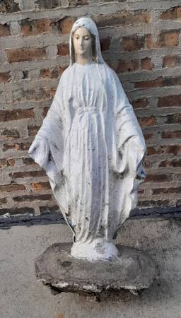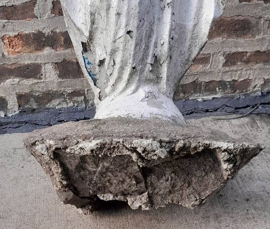 30 1/2" tall solid concrete weigh about 200 pounds and is embedded in a concrete base.