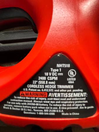 This 22” hedge trimmer is in good working condition. No Battery. This is the tool only. $40.00 cash must pick up.