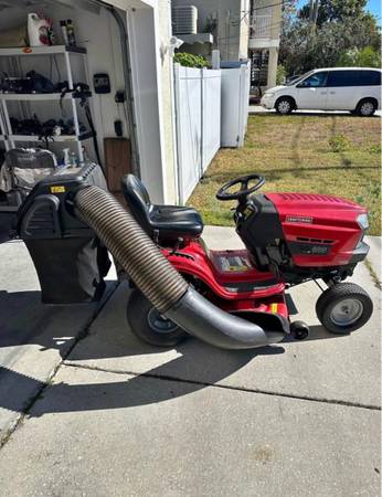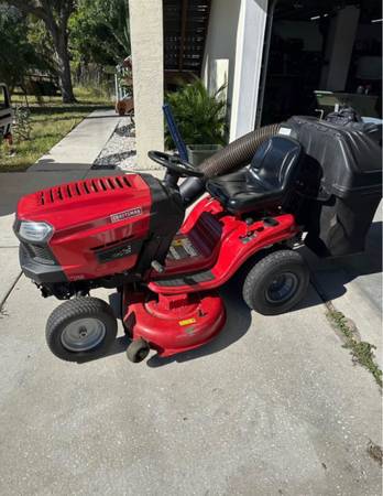 You will be ignored if you ask if it's available. The Ad is up... it's available. Anyway it's a 19hp Briggs and Stratton. 46" cutting deck. It runs perfect. Battery is only 4 months old. Just replaced the front axles and wheels with sealed bearings. Also just replaced the main drive belt, only has a few hours on it. Cutting deck has a small rock hole in it but doesn't affect its performance. Comes
