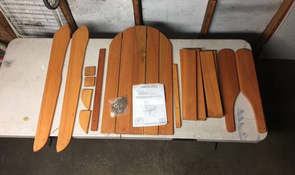 New Solid Wood Adirondack Chair Needs to be assembled Was going to assemble it but I figured it would be easier to transport unassembled. If you want it assembled I could do it before you pick up....