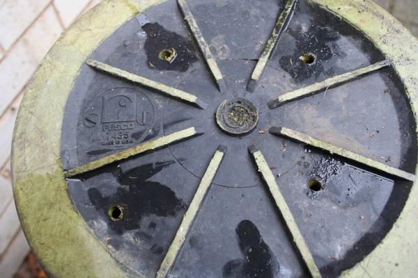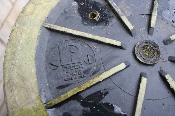 Fesco black molded plastic planter, large enough for indoor Palm Tree or Banana Plant. Marked "Fesco 7435 Made in USA." Circa 1970s. Styled after David Cressey Architectural pottery pieces. Vintage FESCO planters usually sell for over $100. However, the bottom had four weep holes drilled into it and the black finish is worn, thus the lower price (you can purchase spray paint formulated for application to plastic to restore it to solid black).