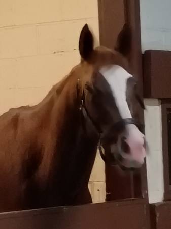 4yrs old chestnut mare 16 hands 4 white socks, blaze flax mane n tail. Very flashy. Great mover, very level headed. Love attention and guaranteed sound. You can see her at Hawthorne race track my ph# show contact info