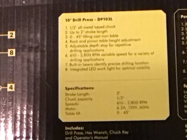 Offered is a (new in box….never opened) 5 Speed Drill Press with a 1/2” chuck.