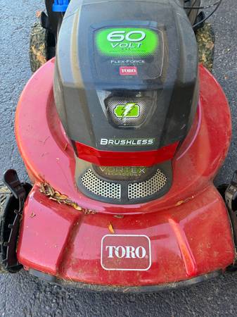 Great condition, used to mow 50'x50' area about 4-5 times. Comes with one 60V, 7.5 Amp hrs battery and a charger.