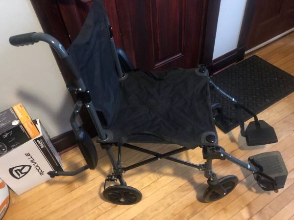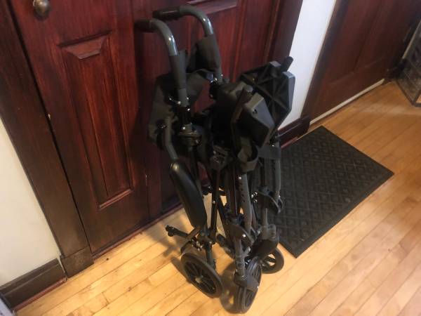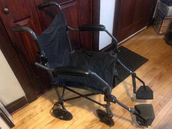 For sale a used Drive medical lightweight transport wheel chair 19” seat, portable and easy to carry, Text or call @ —-No emails ~~~ No codes