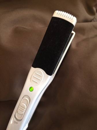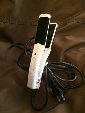 Power IQ Mini Mojo 1” Tourmaline Ceramic Straightening Iron Gently used in perfect working condition. Measures approx. 6 x 2”. 1” plates straighten hair just like a full sized iron. Heats up to 410...