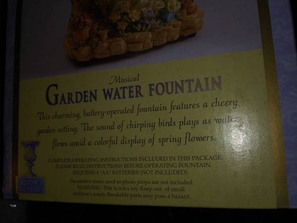 Selling this nice decorative piece from many years back, still new & unused! Battery operated it plays birds chirping & water flowing! Cash only and see the other stuff I'm selling. Thanks
