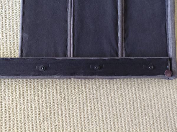 Brand New Condition Grey Queen size bed frame with wooden slats and upholstered dark grey fabric headboard Height of the headboard can be adjusted to 3 different heights as shown in the picture. It...