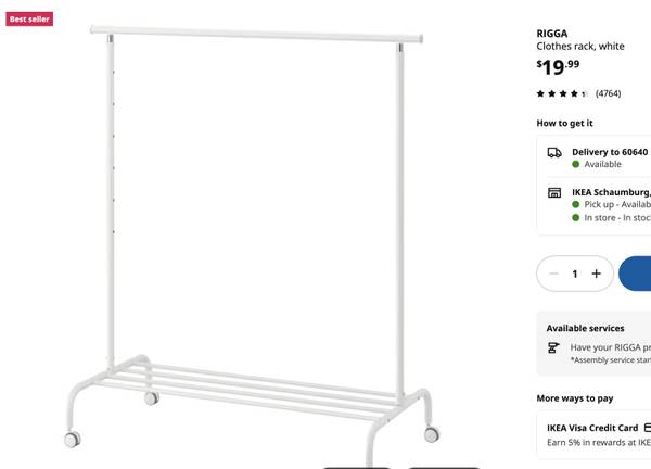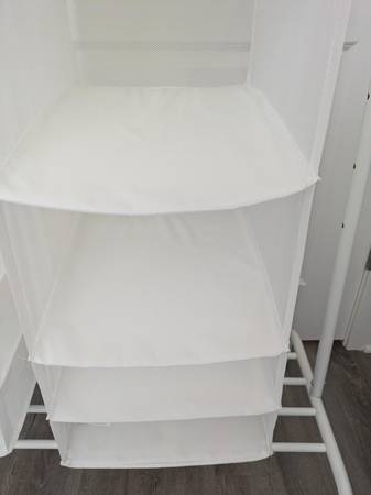 Selling a white IKEA RIGGA clothes rack and 2 white IKEA SKUBB hanging storage units with 6 compartments. Original price $50. RIGGA dimensions: Width: 43 3/4 " Depth: 20 1/8 " Min. height: 49 5/8 "...