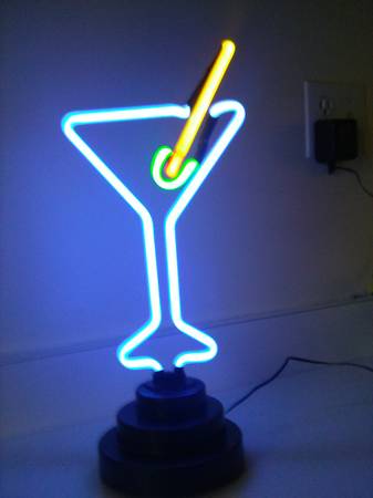 Martini glass neon sculpture light. Like new, in excellent condition! Height 16 " Base is 5 1/2 " Can deliver to Lakeview / Lincoln Square area or near north suburbs. Communicate via CL or txt