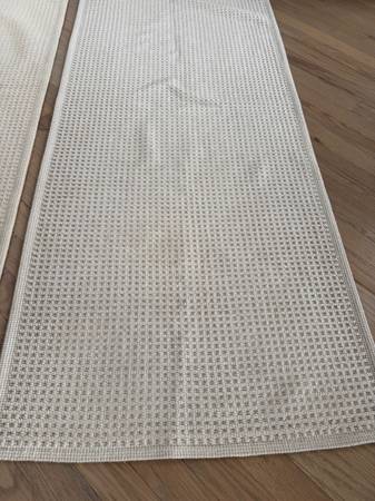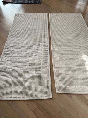 For sale… Pottery Barn Waffle Weave Bath Mats in great condition. They are 24” x 60”. They are washable and cotton design. Nice for extra coverage or for long narrow spaces. $ 10 each.