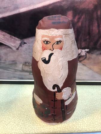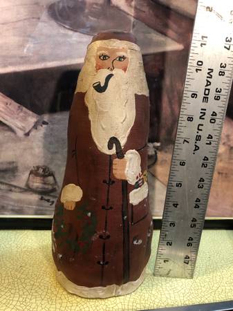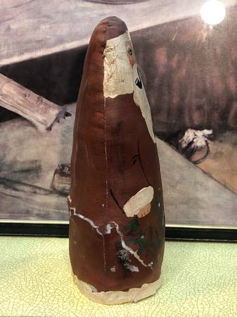 Old Saint Nick hand painted Father Christmas Hand made- wood base, fabric (canvas?) body, stuffed with raw cotton (seeds still attached). Unknown age. Excellent piece of folk art. Could use some...