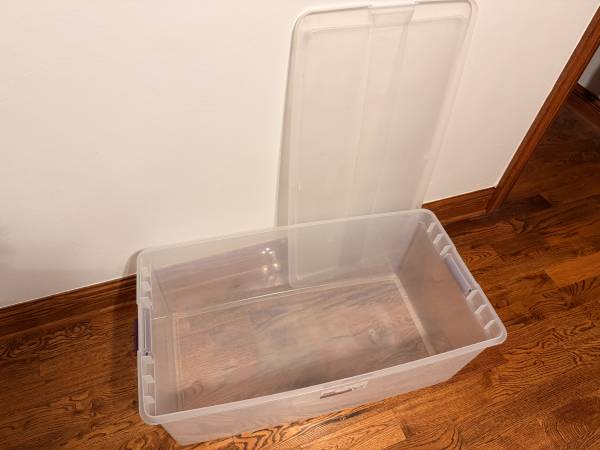 Step up to the versatile Brightroom 110 Quart Clear Latching Storage Bin and get organized! The clear base and lid let you easily view and locate stored contents from any angle. The color accent latches keep the lid attached to the base, to keep items contained. The recessed lids help bins stack to efficiently use vertical space. This large-size plastic storage container is perfect for organizing bedding, blankets, seasonal clothing, sports gear, décor, and other bulky items.