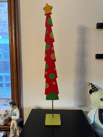 Very cute and festive tall wooden xmas tree decoration stands with a wooden base. 32" tall base is 3.75" x 4.25"
