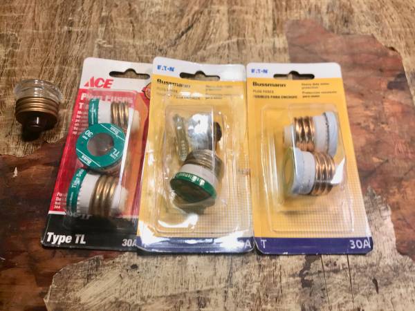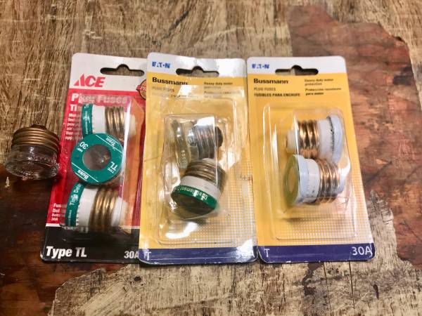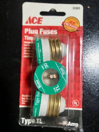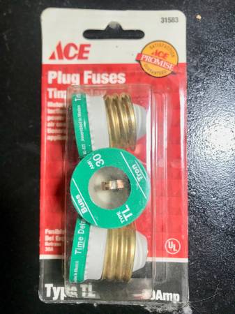 9 Plug Amp Fuses. New/unused. 3 Busmann brand. 3 ACE brand. 2 Central Electric. The ACE are unopned as is one of the Bussmann packages. One package has been opened and contains 1 Bussmann fuse and one Central Electric. Also one Royal Crystal 20 amp fuse. Again all New/unused. All are 30 Amp fuses except the Royal Crystal.