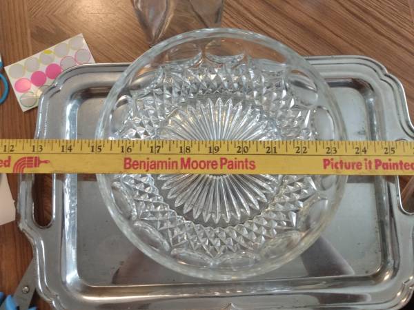 Pre-owned. A beautifully reflective crystal Bowl. Thick and heavy glass with an attractive design. It's missing a silver-plated rim, but no one will know unless you tell them. Priced accordingly....