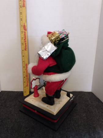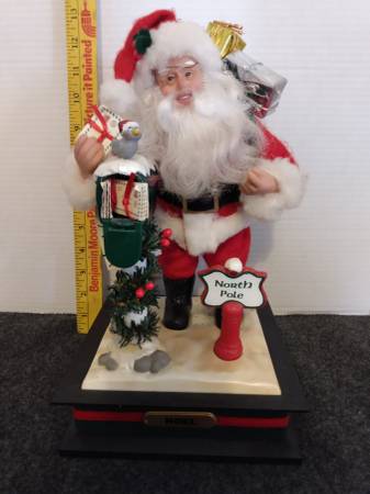 Pre-owned large Christmas decoration of Santa Claus at the North Pole. No longer musical but has a good look and nice size. Cash price $10.00 firm Please bring exact change. Thank you.