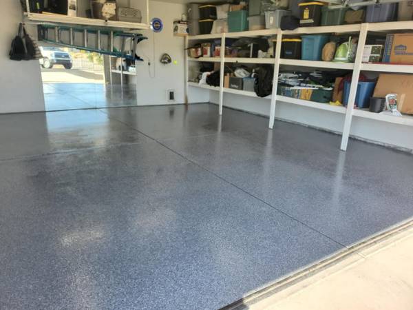 ""Epoxy Masters did a awesome job installing our epoxy floor in our garage 2 weeks ago! We added the moisture vapor barrier because we have a dog.