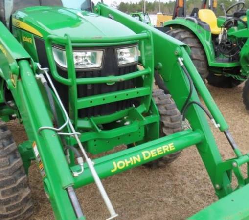 John Deere 4044R 4x4 diesel tractor with loader and cab. ONLY 540 hours!!!! John deere R-Series tractors are premium, high-specification machines engineered for maximum performance, operator comfort, and integrated technology. Enclosed cab with heat/AC. (biggest regret from tractor owners is not getting a cab, A MUST HAVE). Hydrostatic transmission for easy maneuverability! Impressive lift capacity of over 2300lbs!!! SAVE BIG OVER NEW!! DONT MISS THIS!!
