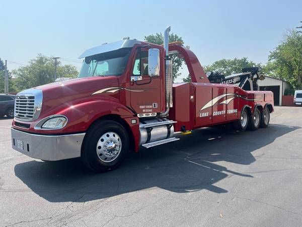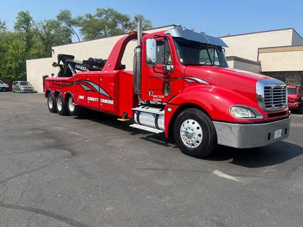 2005 freightliner conventional Colombia wrecker very clean truck, garage kept. truck maintenance kept up , new tires, no lights on the dash, Everything is working as designed. Reason for sell getting a new model.Detroit 60 series original motor was changed 3 years ago with a low mileage motor . Please only call or text for a fast answer!